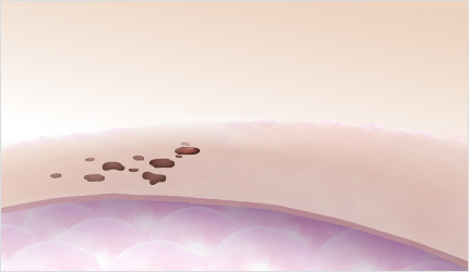 인접한 각질형성 세포와 표피 멜라닌 세포의 멜라닌 색소를 파괴하여 배출합니다.