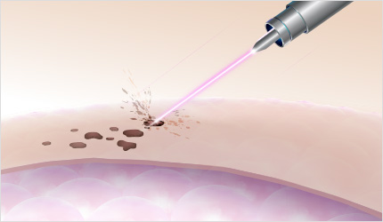 레이저 토닝을 이용하여 1~2주 간격으로 갈색 병변의 주범인 멜라닌 색소를 제거합니다.